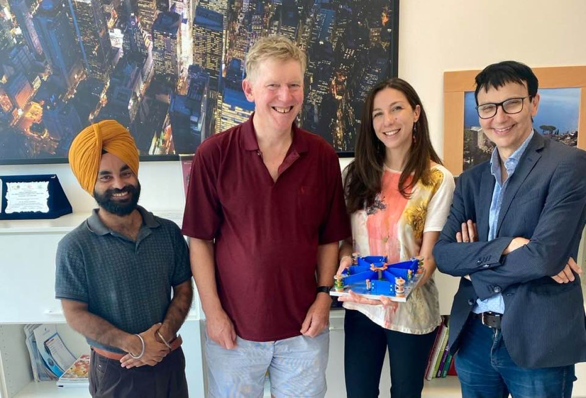 The subsequent video illustrates a motion animation of a demonstrative version of the metaisolator illustrated in the Nature article The 3D print job that keeps quake damage at bay (nature.com). It is followed by a picture of the team that has developed this project (from right to left: Prof. Fernando Fraternali, myself, Prof. Graeme Milton and Dr. Narinder Singh). I am holding a physical model of the metaisolator in my hands.