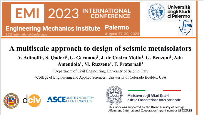 • Partecipazione alla Engineering Mechanics Institute 2023 International Conference, 27-30 agosto, Palermo.